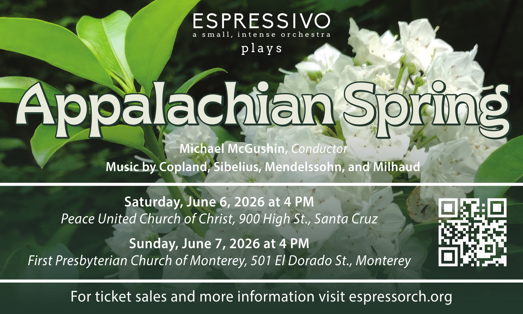 But while Appalachian Spring remains a much-performed orchestral work, it is rarely heard in its original version. In the June concerts, Espressivo returns to the intimate chamber version that Copland first composed for Martha Graham’s ballet of the same name. The spare instrumentation (there are only thirteen musicians) and accessible melodies perfectly matched the historical moment. After years of war and economic depression, Americans longed for simplicity, idealism, and – above all – for hope. In today’s troubled times, these needs still resonate profoundly.